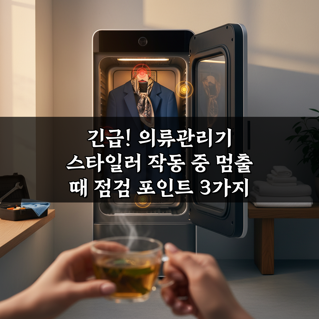 스타일러 작동 중 갑자기 멈춰 당황하셨나요? 긴급 상황! 의류관리기 멈춤 현상 발생 시 꼭 확인해야 할 점검 포인트 3가지와 즉시 해결법을 확인하세요.